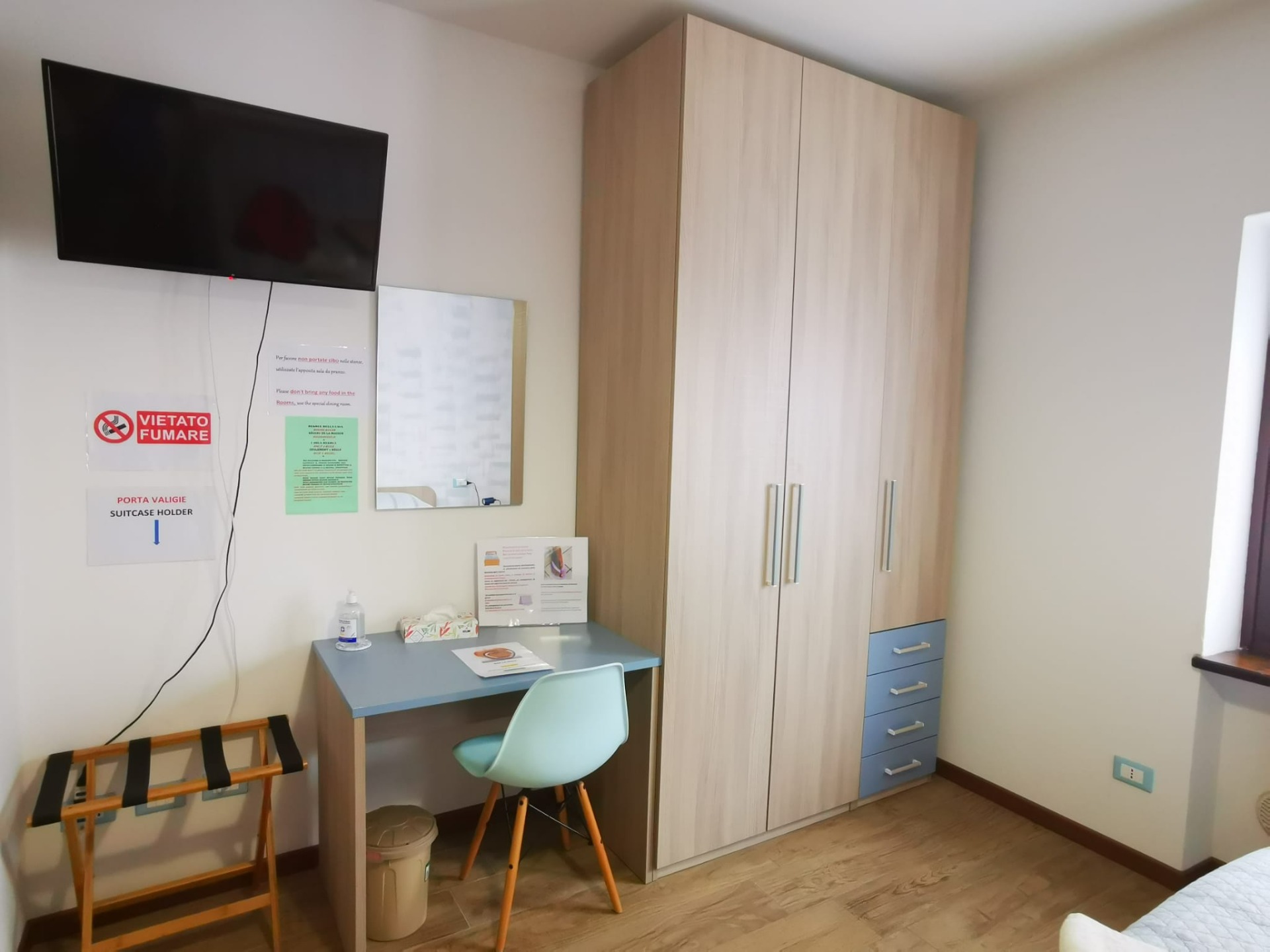 Nella camera ci sono un grande armadio, la scrivania, il porta valige e il televisore 28"
