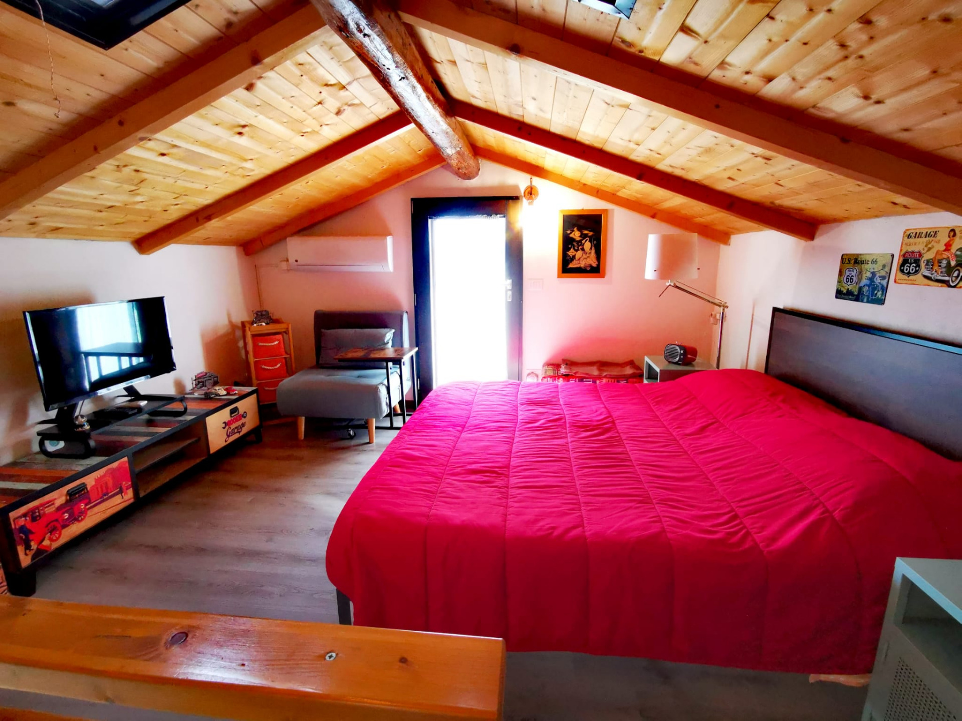 Camera matrimoniale con possibilità del terzo letto, poltrona trasformabile, nella camera ci sono il televisore e il condizionator, esternamente un piccolo balconcino.